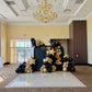 Make your next event unforgettable with this high-end black and gold balloon display that instantly transforms any venue into a luxurious photo zone.